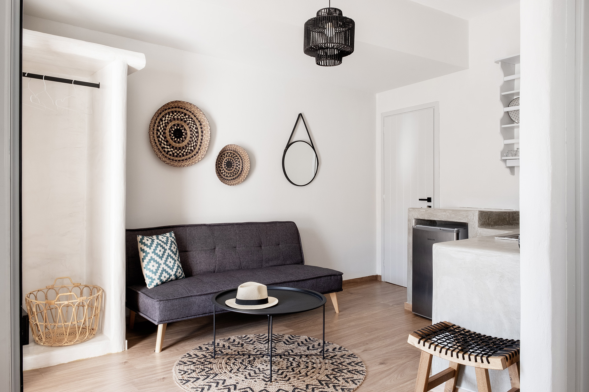 On the second floor with an eye-catching view of the bay, the Cactus Suite 05 is a suite that combines comfort with luxury and it is the perfect choice for couples as well as groups or families of 3 people. This is a suite of 26 sqm., which can accommodate from 2 to 3 people and offers comfort as it has an open space for the bedroom and living room, kitchen, bathroom and large private balcony.